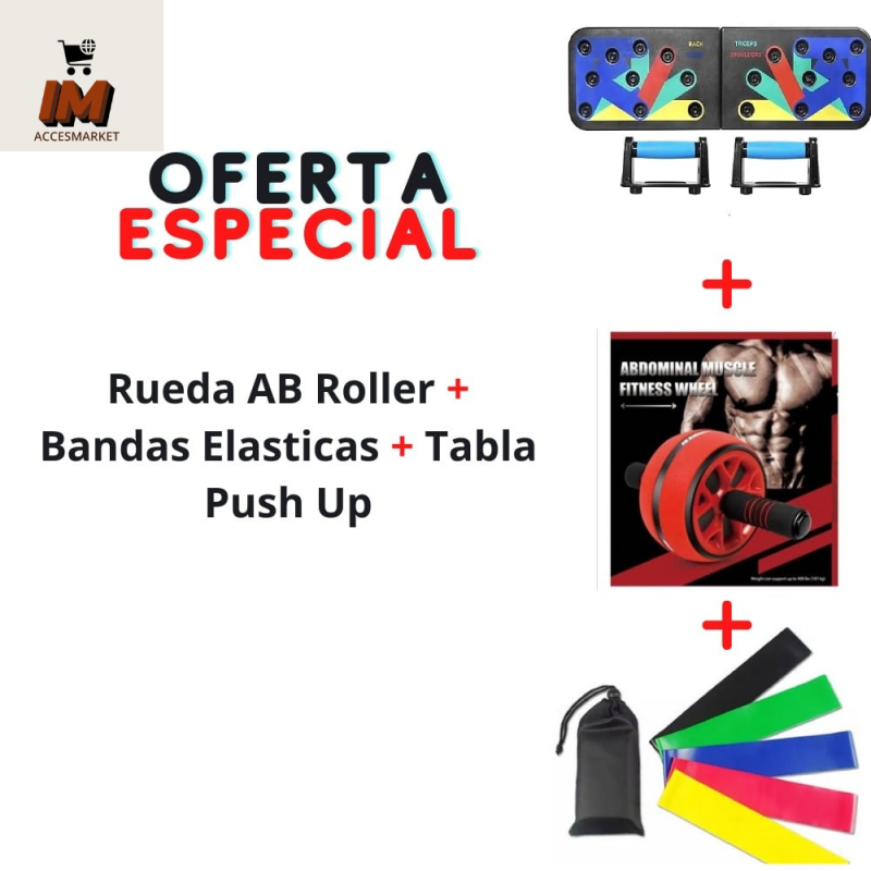 COMBO RUEDA AB ROLLER +BANDAS ELASTICAS + TABLA PUSH UP