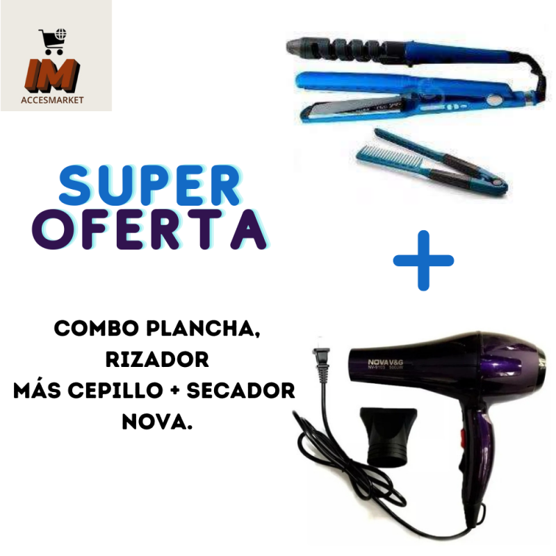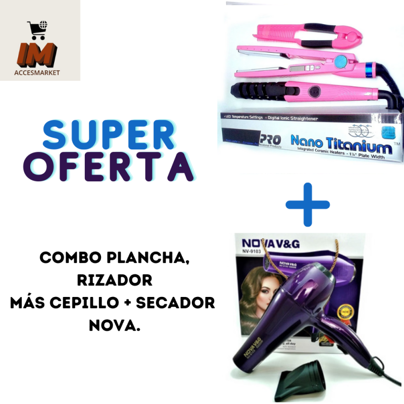 KIT DE BELLEZA (PLANCHA NANO TITANIUM 3 EN 1) + SECADOR NOVA